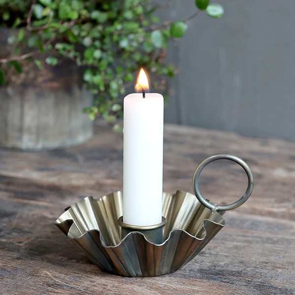 Chamberstick in antique bass. Have as a single or a few together to create a beautiful setting.
