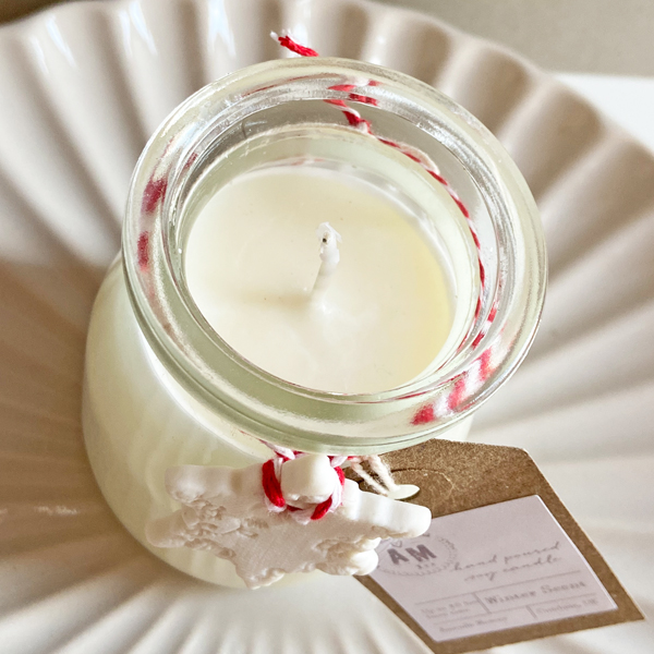 A gorgeous festive pudding bottle candle complete with porcelain tag.